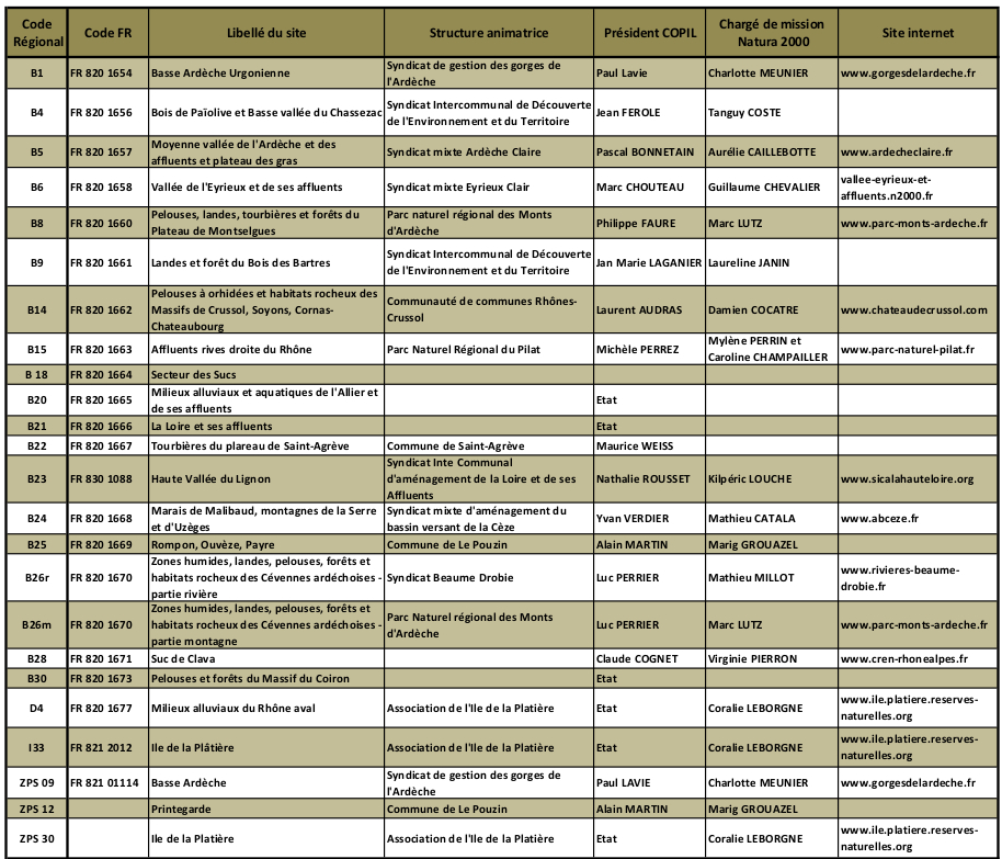 Ses réprésentants, en lien avec le site B6, sont Monsieur Christian DENIS (Chef du pôle Nature) et Madame Martine GRIVAUD (Chargée de mission Natura 2000/Biodiversité), chargée du secteur Nord Ardèche et vallée du Rhône ainsi que de la coordination départementale.
